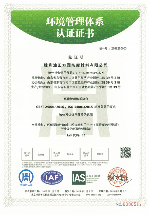 環(huán)境管理體系證書