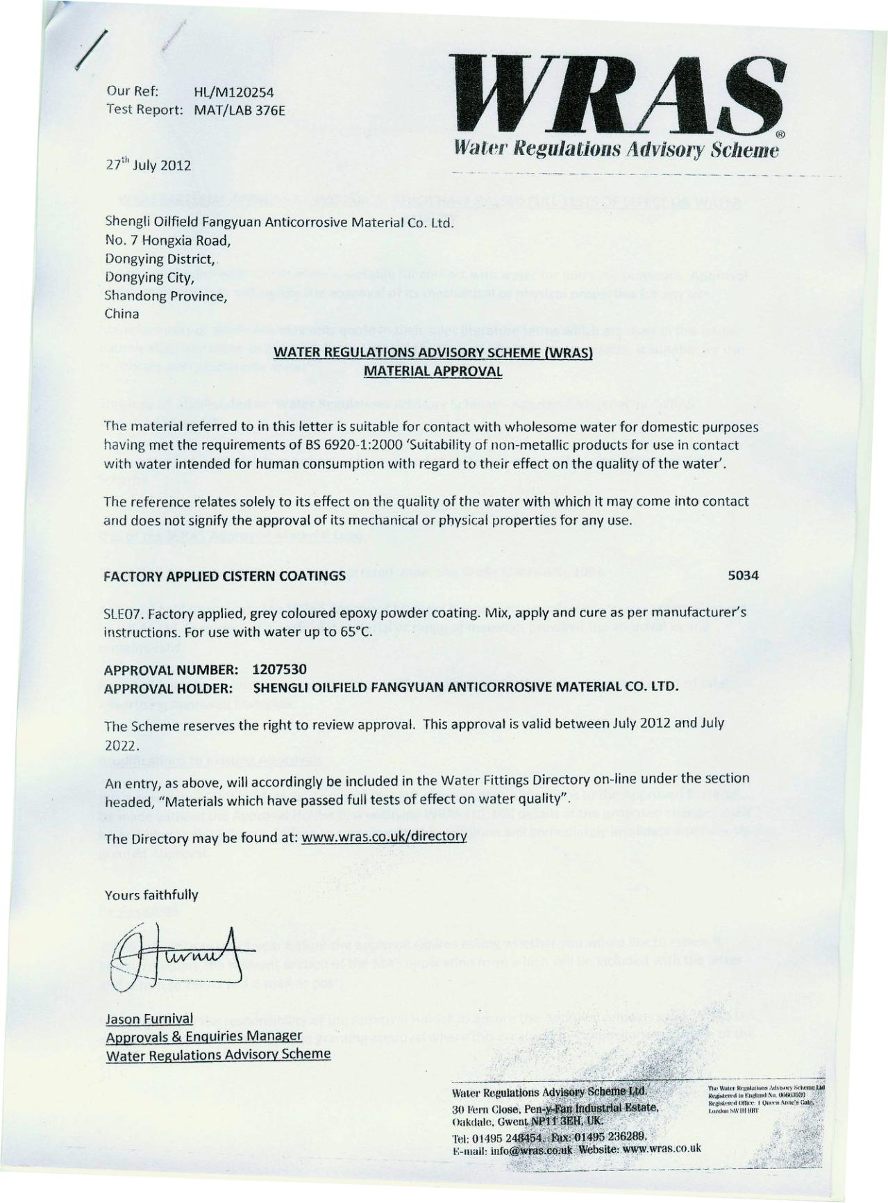 • 飲用水衛(wèi)生安全產(chǎn)品衛(wèi)生許可證批件
